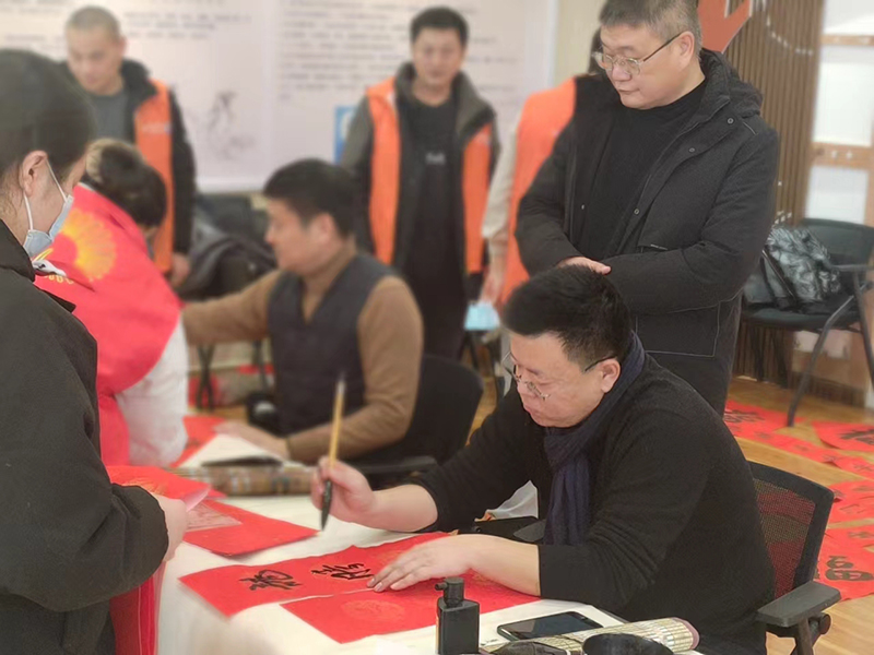 為更好地豐富小區居民文化生活,迎接歡樂、祥和的新春佳節,2月1日,滕投人和天地小區開展“翰墨飄香迎新春 紙墨書香送祝福”寫春聯送福字活動。 活動現場志愿者們提前就把春聯紙、筆墨紙硯等準備齊全,為大家做好書寫服務。書法協會書法家們一早來到小區,挽袖執筆,揮毫潑墨。紅紙為底,黑墨為字