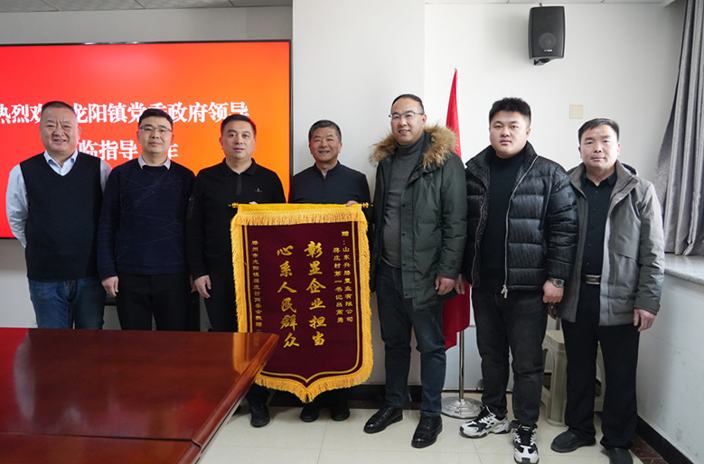 1月29日,龍陽鎮龍山屯辦事處書記陸強、主任邱亞峰,小蔣莊村書記蔣沛學,將印有“心系人民群眾 彰顯企業擔當”字樣的錦旗,送到駐村“第一書記”所在的滕投集團興滕置業公司,向興滕公司對小蔣莊村的關心、支持和幫助表達了衷心的感謝。 據了解,呂高勇同志自駐村任第一書記以來,始終把群眾的利益放在第一位