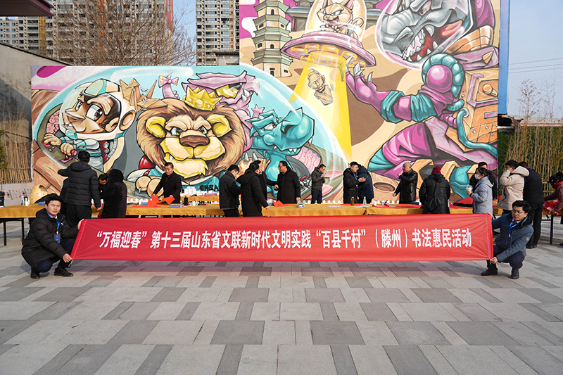 1月21日上午,由滕州市宣傳部、文明辦、新時代文明實踐服務中心主辦的“翰墨賀歲·福滿善城·萬福迎春”新春送祝福活動在山東興滕置業開發的興滕·未來城、柳岸風和兩項目的營銷中心現場舉行,滕州市文聯、文旅局、文化館、書法協會書畫家二十余人參加了本次活動,用傳統的書畫藝術形式,為市民群眾送上飽含真心的新