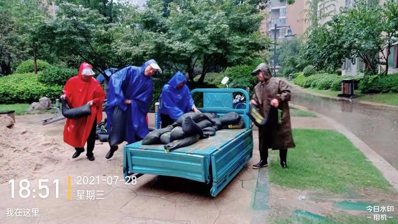 同時,值班人員不間斷的在車庫、儲藏室、電梯機(jī)房、基坑、各類設(shè)施設(shè)備用房、道路路面巡查,實(shí)時監(jiān)控防汛情況。