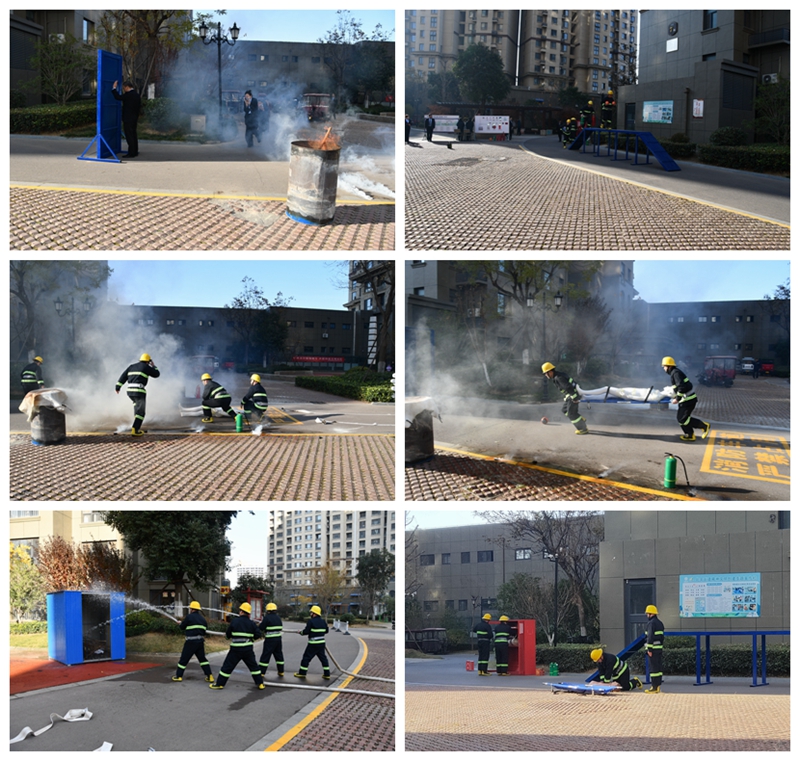 在實(shí)戰(zhàn)演練階段,按照演練流程,消控室人員接到消防監(jiān)測系統(tǒng)報(bào)警后,馬上查看火情及鎖定位置,并向市消防大隊(duì)報(bào)警救援,立即啟動(dòng)防火應(yīng)急處置預(yù)案,迅速成立防火救援指揮部,同時(shí)組織小區(qū)消防應(yīng)急隊(duì)、社區(qū)醫(yī)護(hù)人員、物業(yè)工作人員成立滅火組、疏散組、救護(hù)組、后勤組開展滅火任務(wù)。疏散組、救護(hù)組和后勤保障組迅速展開滅火疏散和自救行動(dòng);滅火組在隊(duì)長的正確指揮下身著消防服、持滅火水帶、手提滅火器,迅速到位,將“火”撲滅;救護(hù)組對傷員進(jìn)行心肺復(fù)蘇救援。整個(gè)過程緊張有序,各小組分工明確、默契配合圓滿完成了演練任務(wù)。