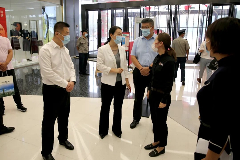 9月9日,市商務(wù)和投資促進局黨組書記崔波、局長單金鳳帶隊來人和廣場檢查疫情防控及安全生產(chǎn)工作。集團總經(jīng)理侯欽軍、副總經(jīng)理趙海軍陪同活動。崔波一行重點檢查了人和廣場商鋪員工健康監(jiān)測、進入人員掃碼測溫及安全生產(chǎn)管理落實情況,要求相關(guān)負責人要嚴格落實主體責任,把疫情防控和安全生產(chǎn)工作各項要求做細做實,全力構(gòu)