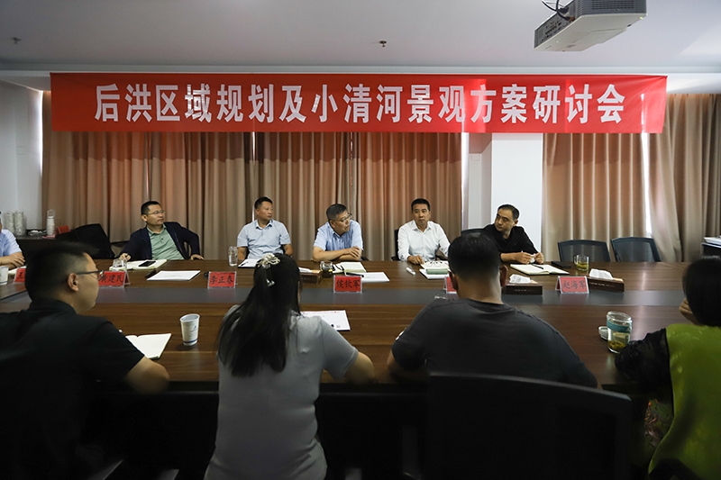 9月22日,后洪區域規劃及小清河景觀方案研討會在滕投集團召開。滕投集團董事長侯欽軍,總經理李自海,副總經理李正春、趙海軍、黃建民,工會主席王洪全及項目相關負責同志參加會議。 此次研討會共分為橋梁設計、住宅區域設計、景觀設計三個板塊,五家設計公司分別以位置分析、現狀分析、效果展示為切入點,匯報